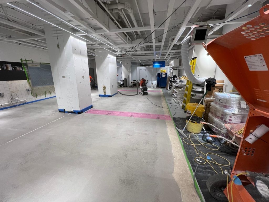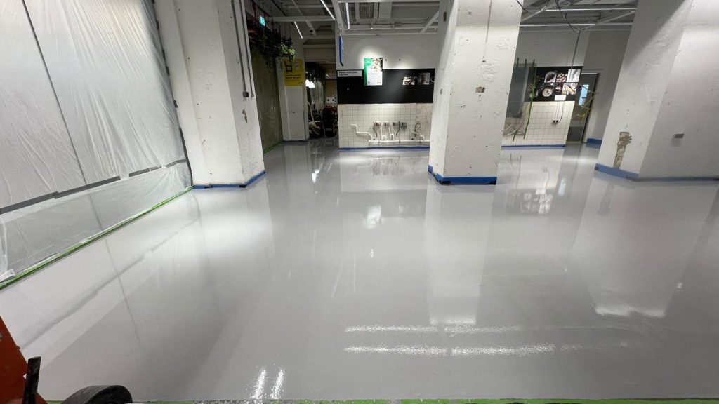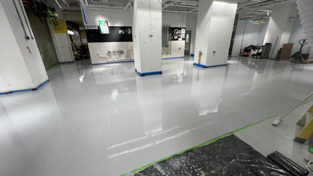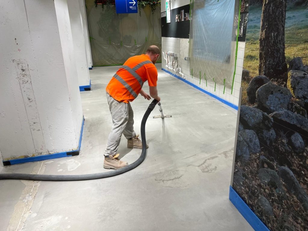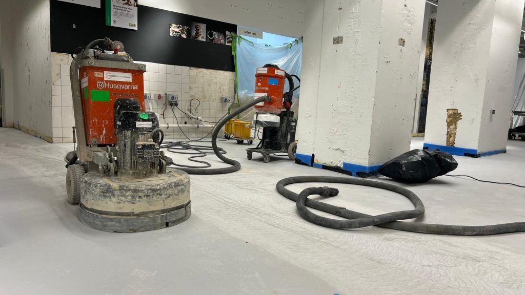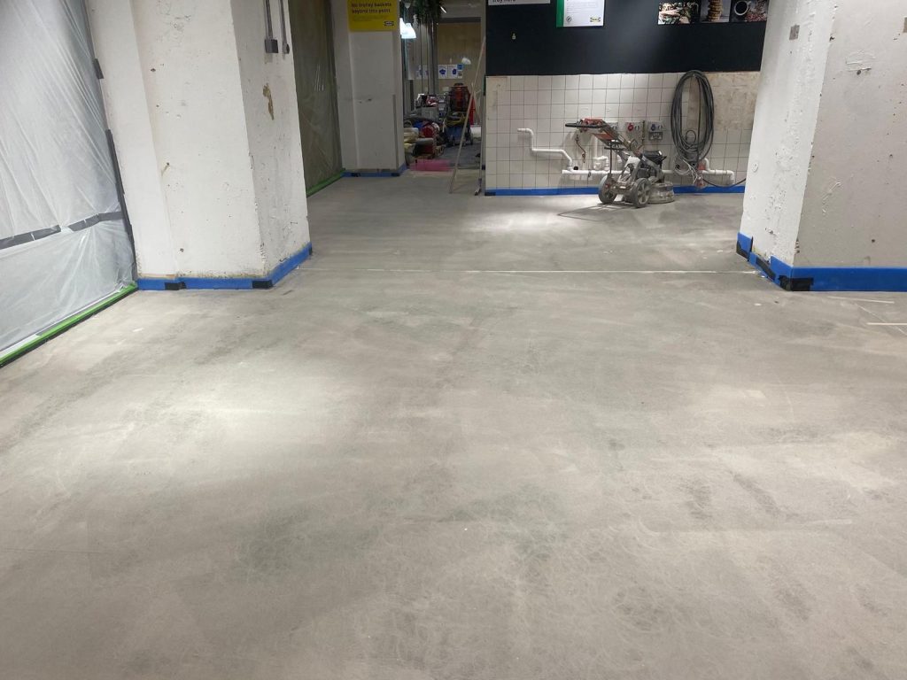 Concrete Polishing supplied, placed and polished this polished concrete cementitious overlay at a retail space in Hammersmith, London. The client opted for a mid grey, rustic style finish.