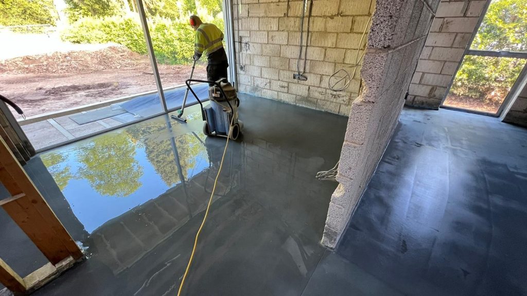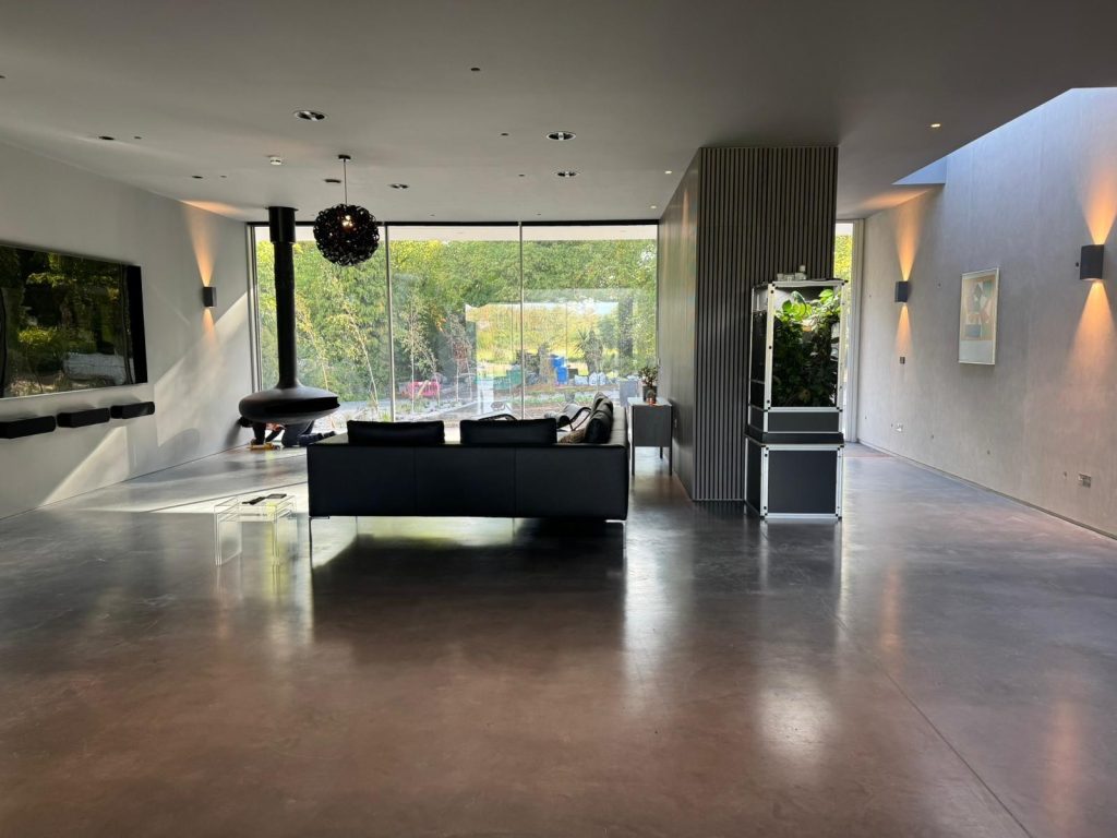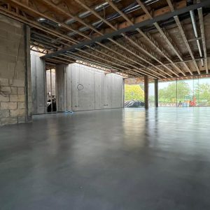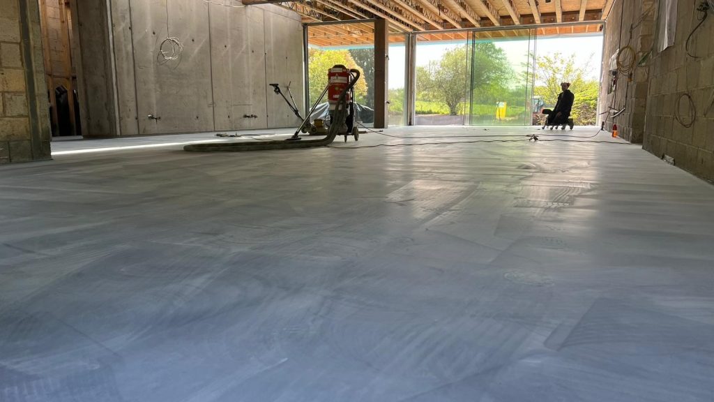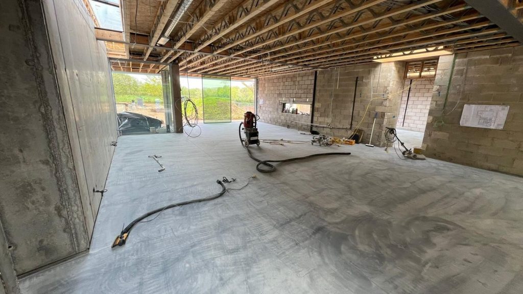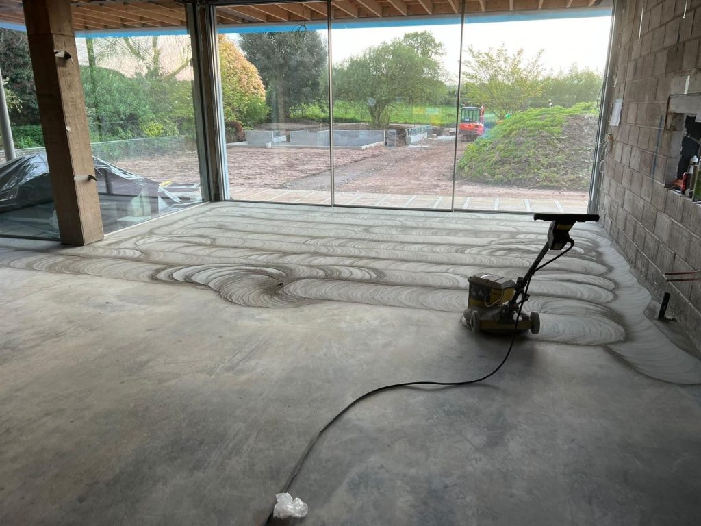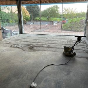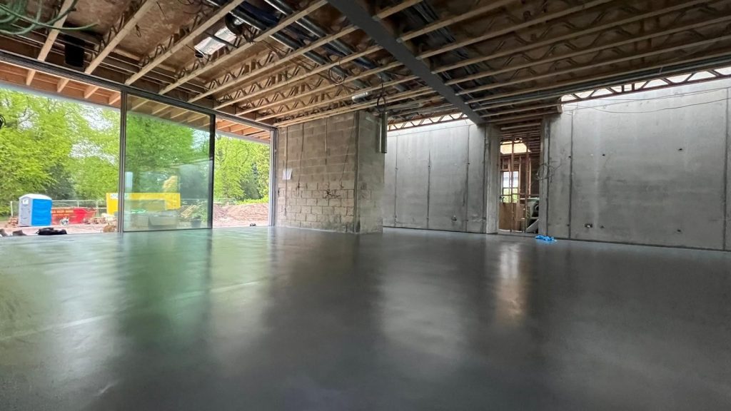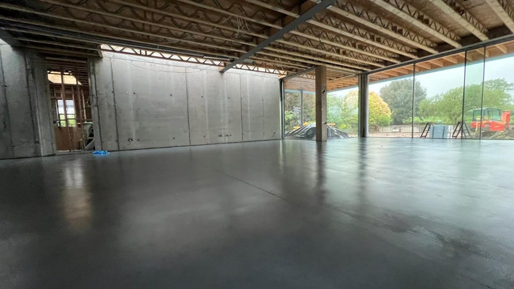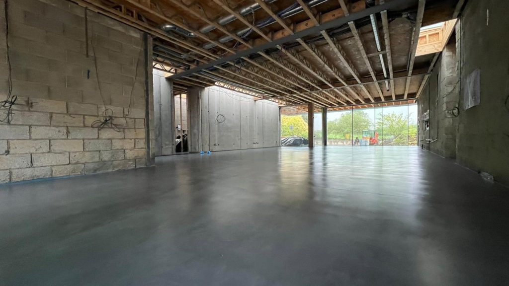 Platinum grey, rustic style finish polished concrete flooring in Nottingham, Nottinghamshire. Concrete Polishing supplied, placed and polished this 370m2 area.