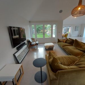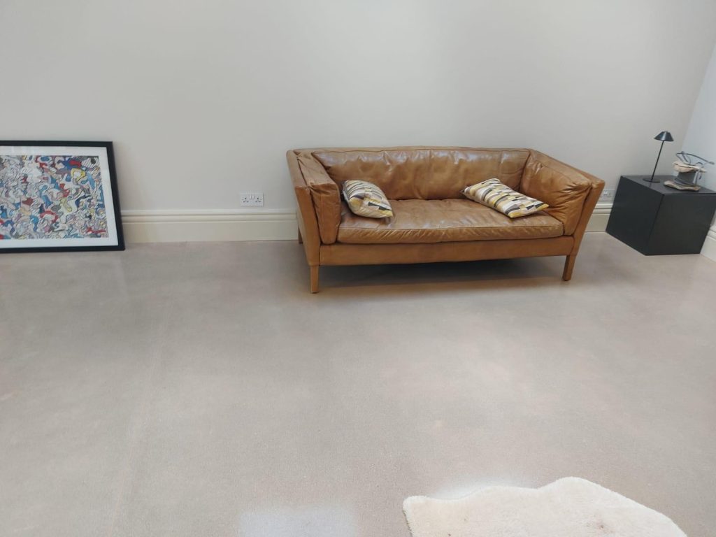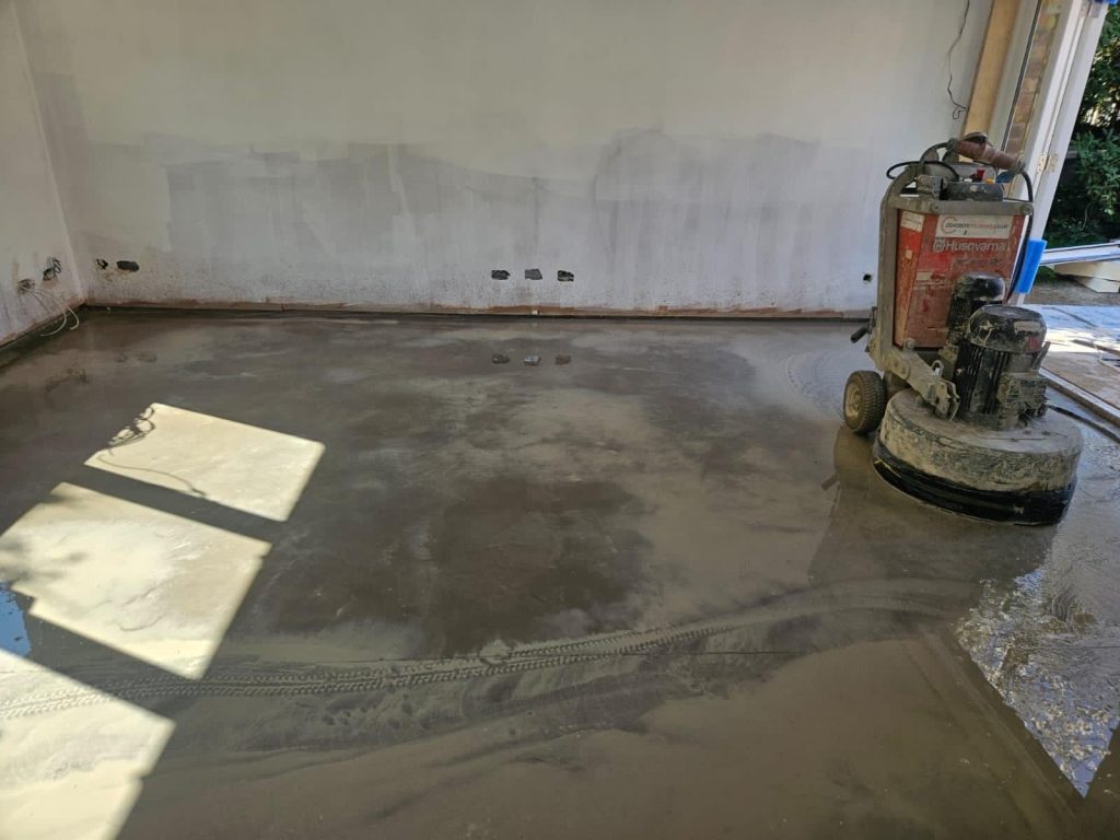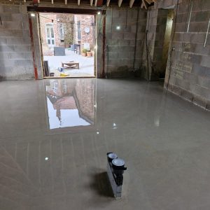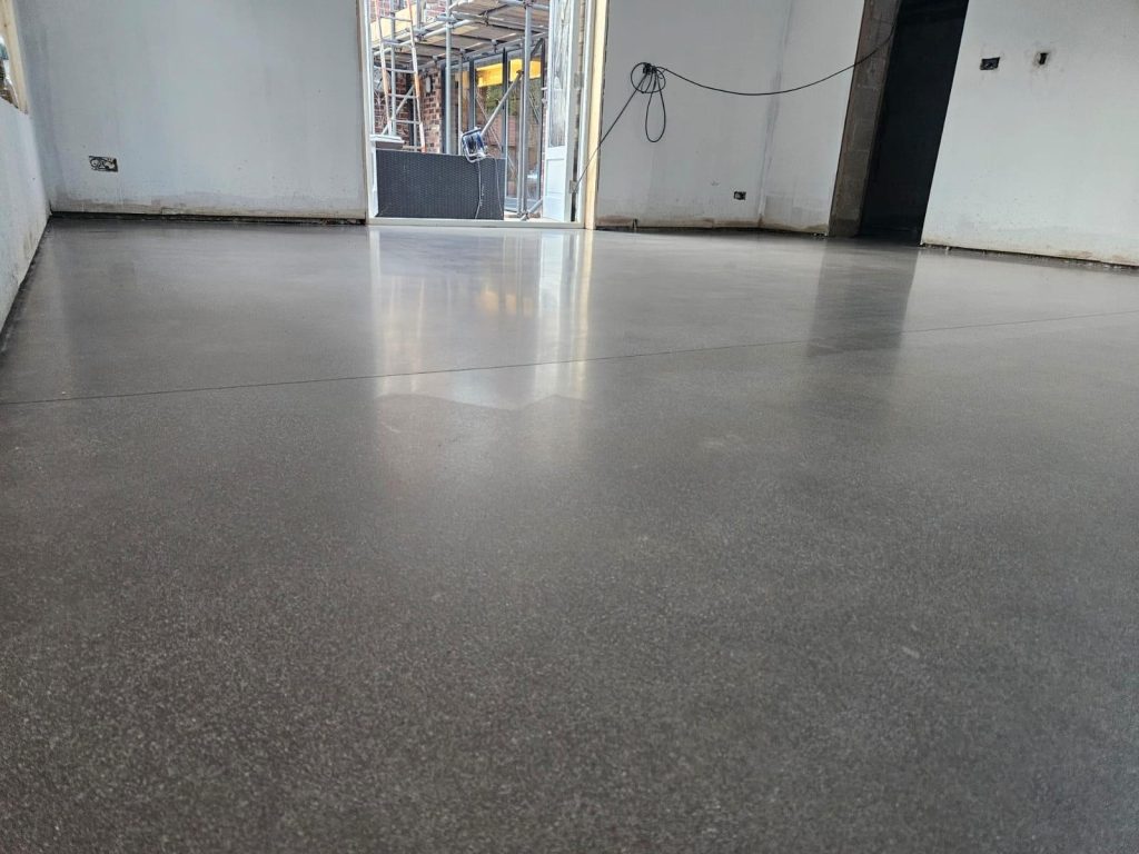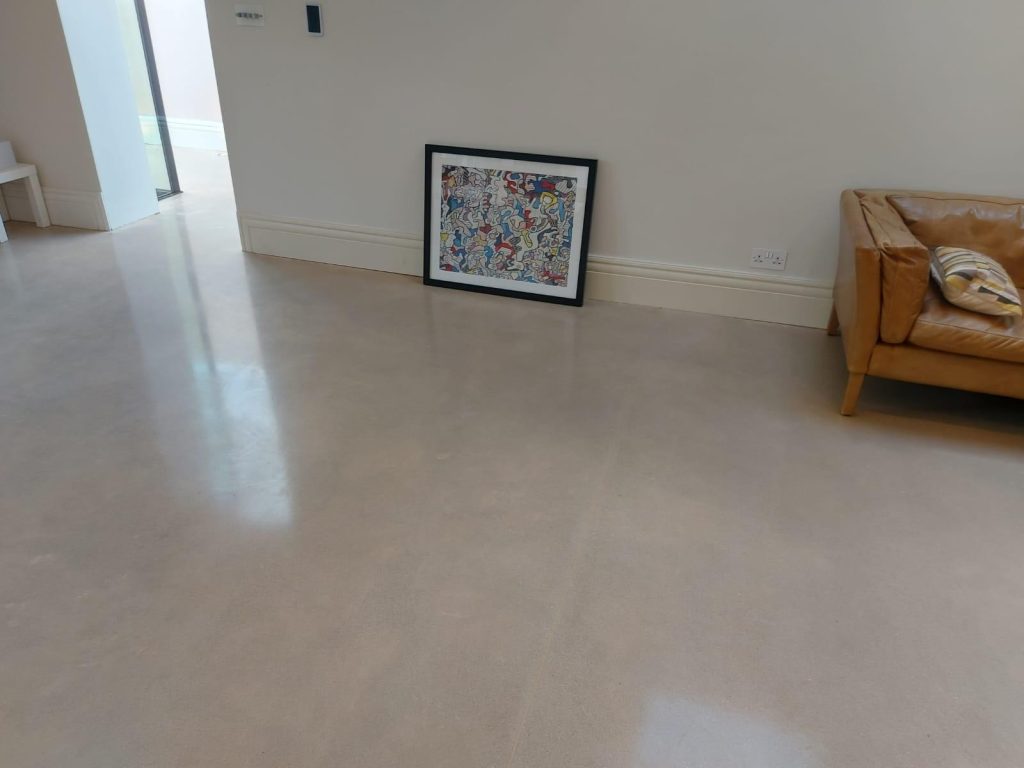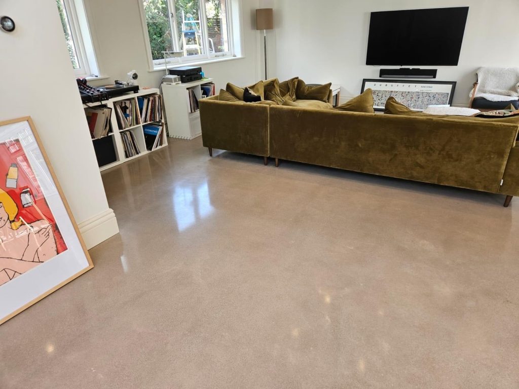 Concrete Polishing supplied, placed and polished this residential polished concrete project in Wilmslow, Cheshire. The client opted for a conventional concrete mix, stone buff colour added to the design with a rustic style finish.