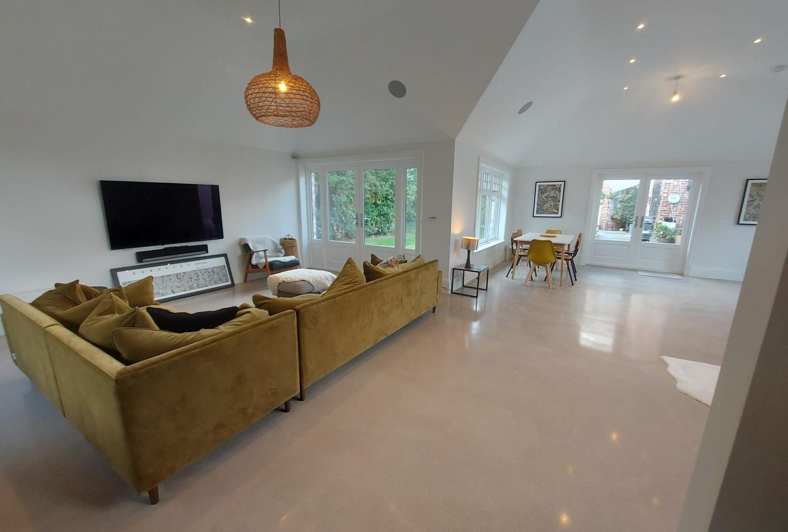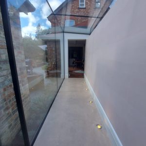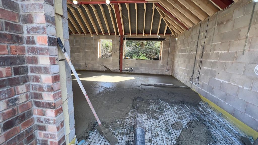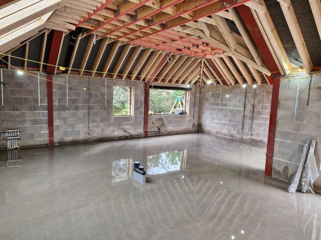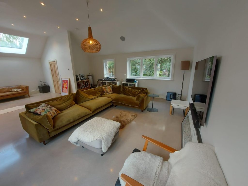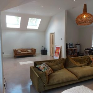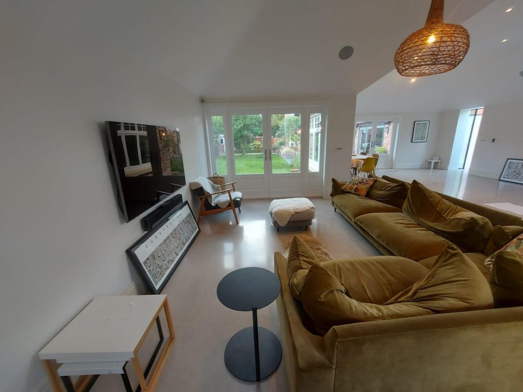 Concrete Polishing supplied, placed and polished this residential polished concrete project in Wilmslow, Cheshire. The client opted for a conventional concrete mix, stone buff colour added to the design with a rustic style finish.
